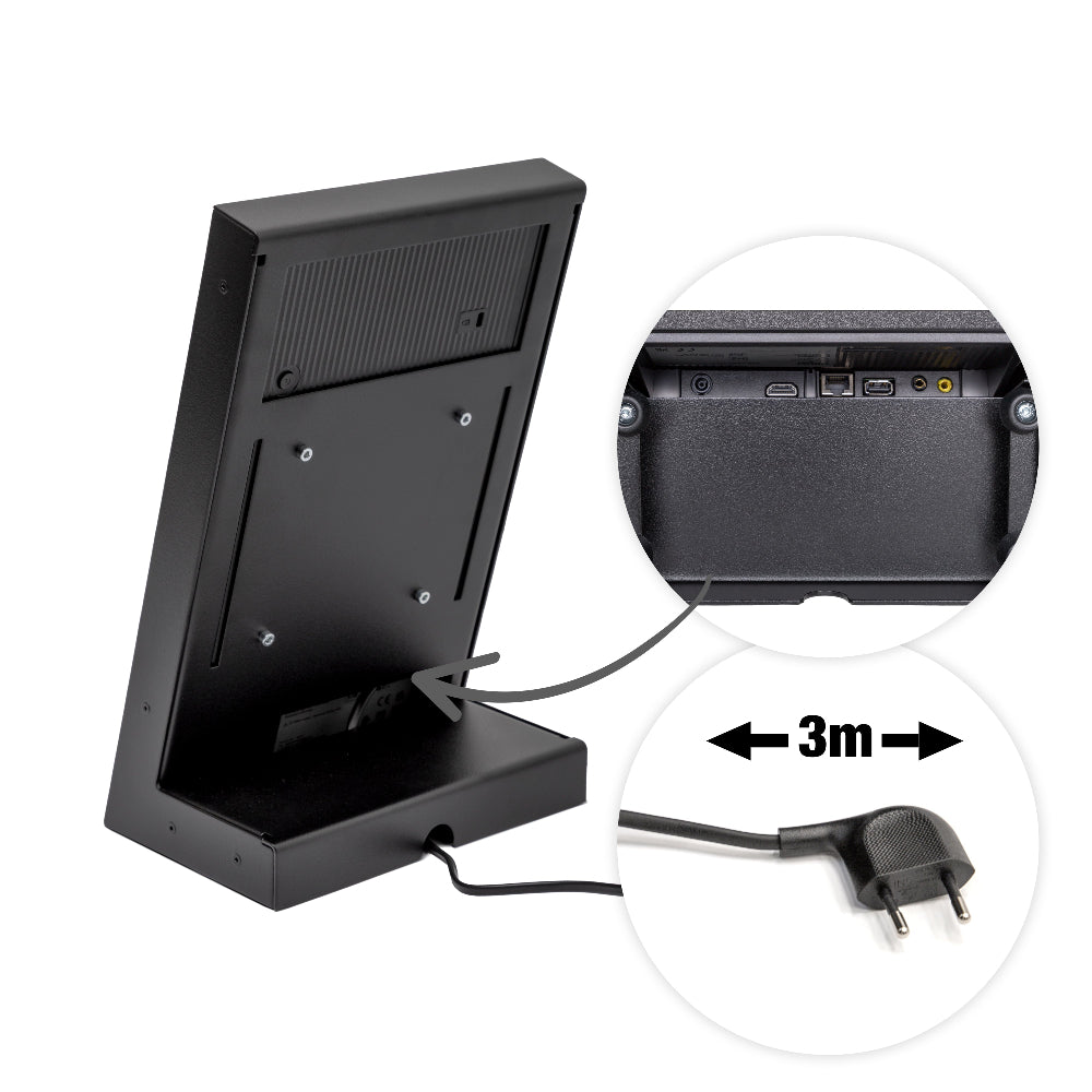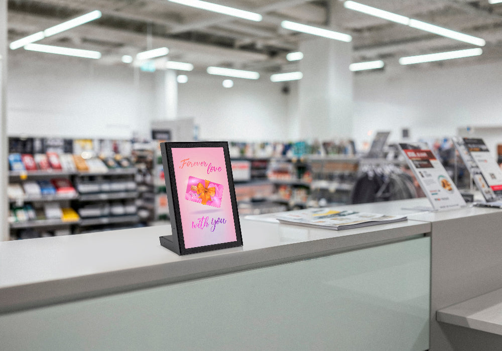 Featuring a vibrant 13” Samsung UHD screen, this compact L-shaped display provides stunning visuals without taking over your counter. Its fingerprint-resistant paint finish keeps it looking clean and professional with minimal upkeep. Perfect for reception desks, retail counters, and service areas. Delivered fully assembled and ready to use right out of the box.